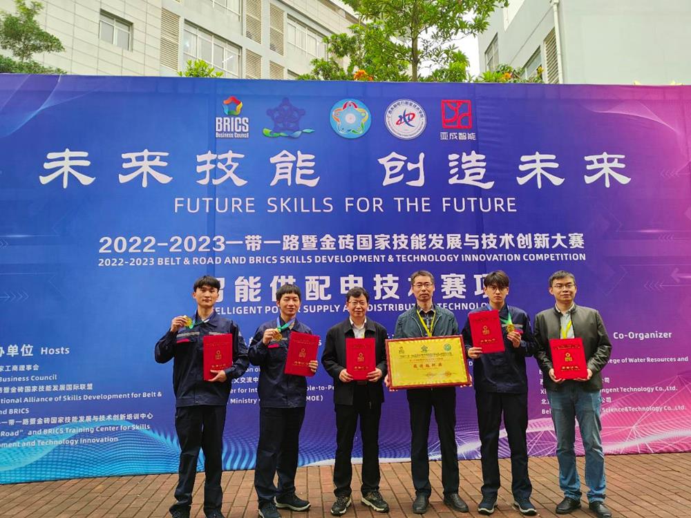 2023年3月31日-4月2日,2022-2023一带一路暨金砖国家技能发展与技术创新大赛之第二届智能供配电技术赛项决赛在广西水利电力职业技术学院举办。本次决赛共有来自全国36支高职代表队参赛。经过激烈角逐,由我校电气工程学院王吉峰担任领队,陈海军、陈珂指导的苏绍明、韩百真和黄伟林三位同学在高手如林的竞赛队伍中脱颖而出,获得第二名,勇夺赛项一等奖,并获最佳组织奖。