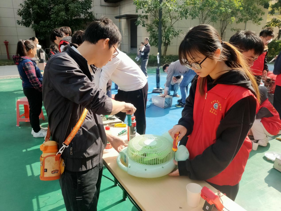 12月7日,在翁桂鹏老师带领下,家电义务维修协会的成员们走进时代名著社区,开展了家电义修活动及环保宣传、安全用电及省电小技巧科普,通过实际行动诠释了青春力量。