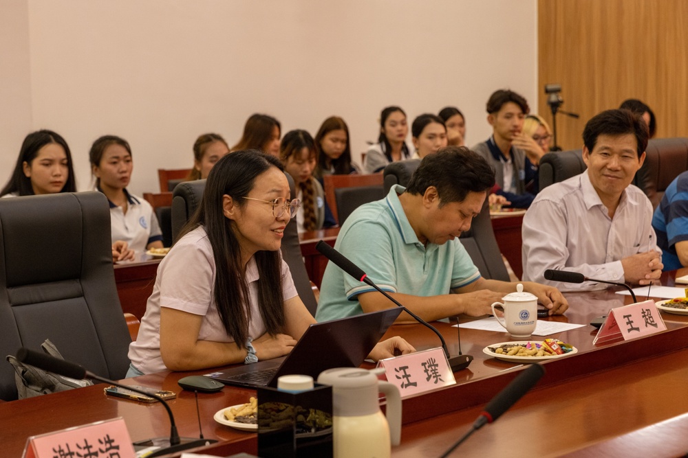 值此教师节和中秋节来临之际,王超向全体与会者致以节日的祝福。老挝留学生为在场老师送上鲜花,表达教师节的良好祝愿。二级学院相关负责人还为2024级老挝留学生赠送了《高铁情境汉语》教材。合影留念后,老挝留学生任课教师与全体老挝留学生提前欢庆中国传统节日中秋佳节,活动在热烈的气氛中结束。