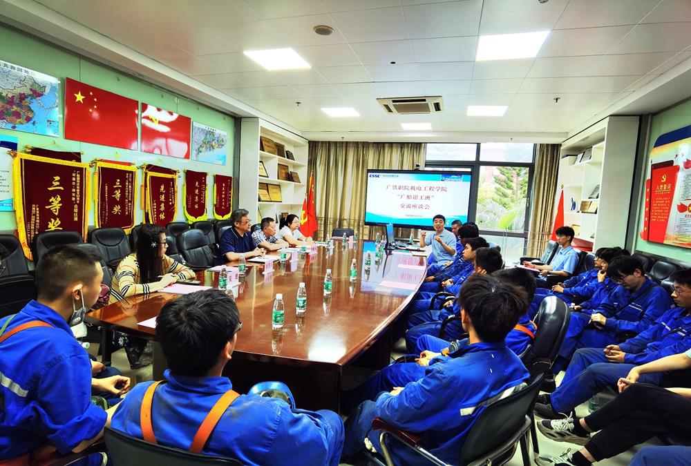 为深入了解学生顶岗实习、就业状况,进一步加强校企合作,5月11日,机电工程学院党总支王青书记率专任教师、辅导员一行5人赴广船国际有限公司走访调研、看望在企顶岗实习的2023届钳工订单班学生,受到广船国际公司总监曾令清、组织人事部部长赵文正、人事劳动室主任刘凤斌等领导的热情接待。