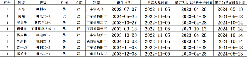 遵照机电工程学院党总支工作安排,秉持公平、公正、公开的原则,根据个人综合素质、标杆模范带头作用发挥、党课培训情况以及党内外意见征集等,经机电工程学院学工党支部大会投票表决后,现公示2024年下半年确定预备党员名单,具体名单见下表: