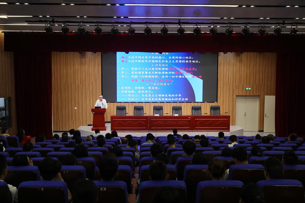 杨建伟主任以《深刻领悟“两个确立”的决定性意义》为题,深刻阐释了“两个确立”的基本内涵、历史地位及决定性意义。从理论、历史、未来三个层面,深入剖析了“两个确立”是马克思主义政党的根本属性、是中国共产党百年奋斗的根本经验、是实现中华民族伟大复兴的根本保证等三个问题的丰富内涵、精神实质和历史意义。杨建伟主任的授课主题突出、内容丰富,观点鲜明、逻辑严密、旁征博引、深入浅出,既有理论高度,又有思想深度,同时紧密联系实际,进一步提高了我们对“两个确立”的思想认识和政治站位,对全体党员干部、师生深刻理解“两个确立”的决定性意义和准确把握党的二十大精神具有很强的指导意义。