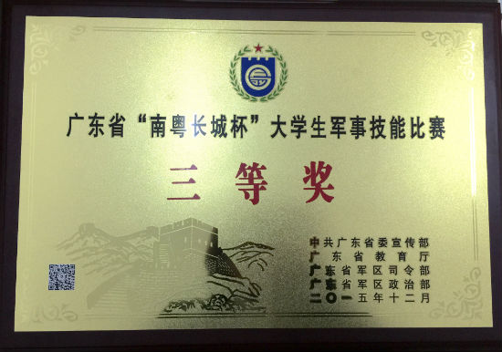 据悉,由省委宣传部、省教育厅、省军区司令部、省军区政治部联合主办的广东省“南粤长城杯”大学生军事技能比赛暨汇报演练是近年首次大型大学生军事技能型比赛,也是全省为纪念大学生军训三十年举办的大型大学生军事技能汇报演练。比赛从报名到初赛只有一个月的时间,分技能比武、视频展示、会徽设计等各项不同类别的竞技,其中,技能比武就包括了56式半自动步枪分解结合。为了克服零基础、时间短、任务重等重重困难,学院学生处聘请专业教官全程指导,特挑选由轨道交通学院甘霖等24名同学组成了一支强有力的队伍,他们酷暑里坚持训练,一次次调整步伐,一遍遍装卸枪支,终于同学们带着铁职学子的靓丽风采和精湛技能在比赛场上出色地完成了军体拳、队列动作、轻武器分解结合等比赛科目,获得团体三等奖的优异成绩;同学们自编自导自演拍摄的以“铁警雄风”为主题的军事微电影在微信投票环节获得近千票,获得汇报演练优秀奖;主办方对我院在本次比赛中的高度重视,热情参与,认真负责表示赞许,特为我院颁发“优秀组织奖”。