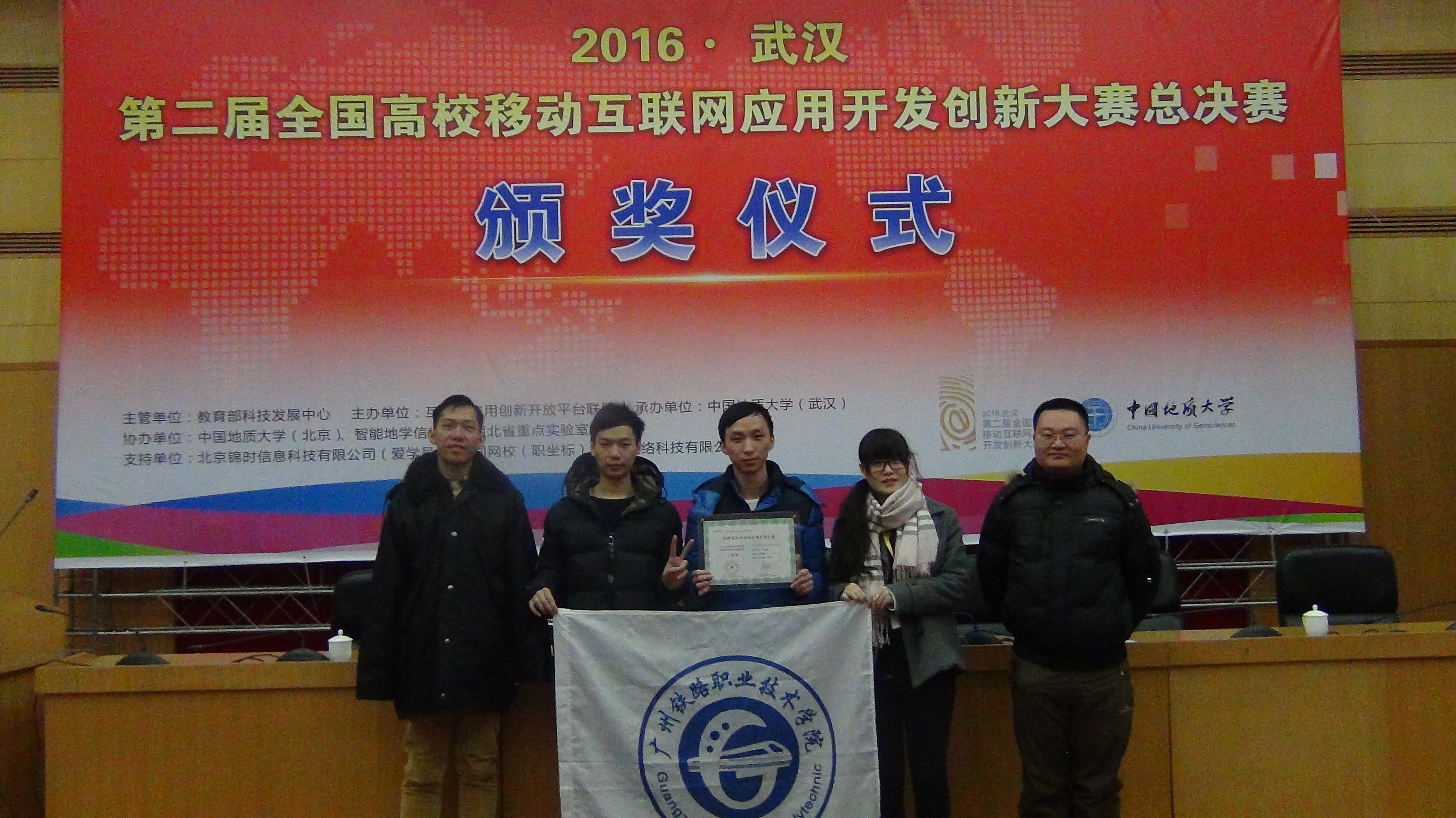 1月23日至25日,第二届全国高校移动互联网应用开发创新大赛全国总决赛在中国地质大学(武汉)举行。由我院信息工程系教师刘国成、霍睿指导的黄振鹏、伍志鹏、方圆等3位同学获得全国总决赛二等奖。刘国成获得全国总决赛最佳指导教师奖。