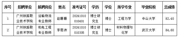 广州铁路职业技术学院2024年第一批引进急需专业人才拟聘人员公示(八)